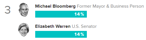 Bloomberg picked up another 2 points among Democratic primary voters across the country, pulling even with Warren at 14% first-choice support. https://morningconsult.com/2020-democratic-primary/ …pic.twitter.com/PO2e2kz9LC