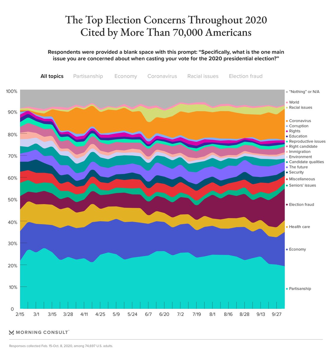 NEW: Our analysis of nearly 70,000 open-end survey responses collected Feb. 15-Oct. 8 among U.S. adults reveals one main pattern: negative views of President Donald Trump. https://bit.ly/34uyOSn pic.twitter.com/oyeRkfcBeC