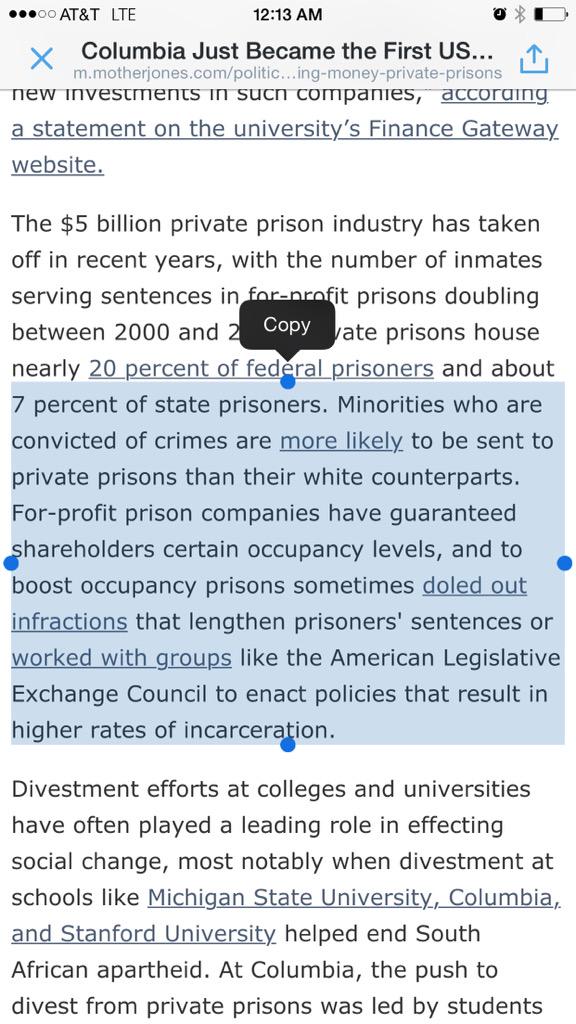 “@MotherJones:Columbia just became the first US university to divest from private prisons