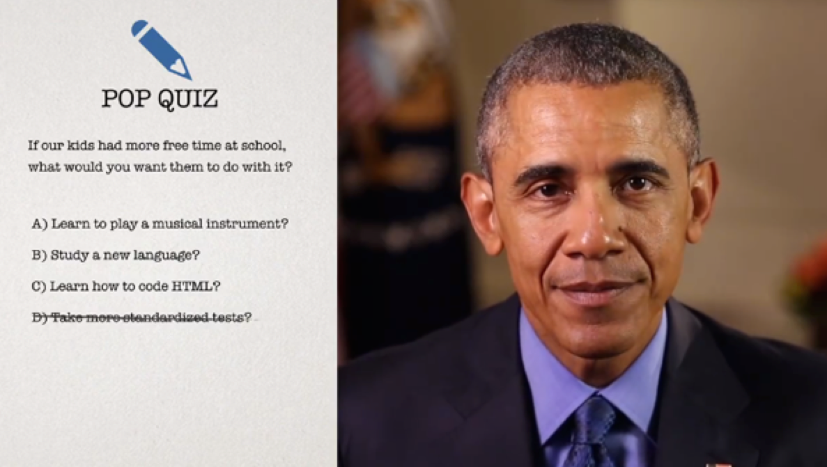 Finally, Obama denounces America's standardized testing obsession http://bit.ly/1ian9fV pic.twitter.com/cJd2c3Blyo