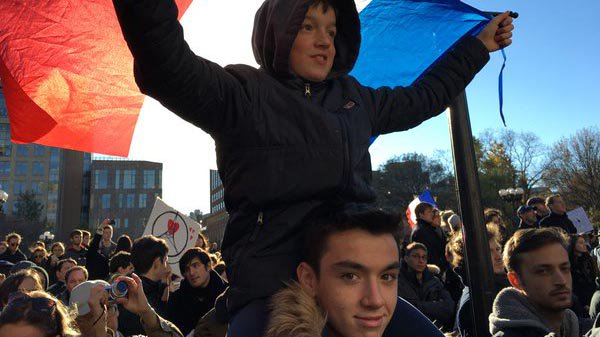 New Yorkers rally to show love for Paris http://mojo.ly/1WZ1BRd pic.twitter.com/FrVMdMISCn