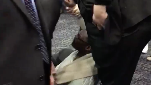 @MidniteTrain4GA@realDonaldTrump had African-Americans on stage speaking to the crowd in Vegas when this protester started yelling. -