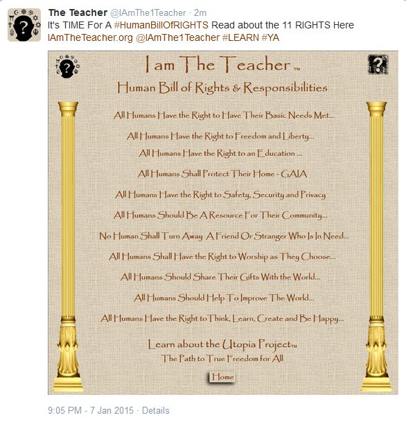 Why haven't you reached out to The Teacher yet? Assumed you'd be a fan... http://www.IAmTheTeacher.org www.and http://ChurchOfGodAndHUMANITY.org .