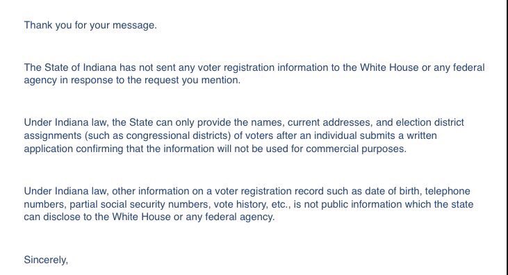 As I tweeted earlier in the week - this is the reply from my state who has said they have not turned over any data (Indiana)pic.twitter.com/l99gf0tYNL
