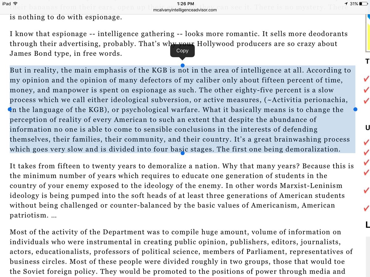 #ALLAMERICANS should be alarmed. Per a 1985#KremlinKGB agent interview,#KremlinPlan to internally infiltrate the USA for a takeover started decades before the interview (note his quote re. "conservative media"): 1. https://mcalvanyintelligenceadvisor.com/demoralization-destabilization-insurgency-normalization … 2. https://youtu.be/KJQlvsP4Xp0 pic.twitter.com/yRsnSSC4DX