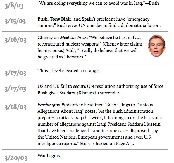 From mushroom clouds, duct tape, Judy Miller, and Curveball. Recalling how Americans were sold a bogus case for invasion http://bit.ly/2FNMhdB pic.twitter.com/gFESSqgrPI
