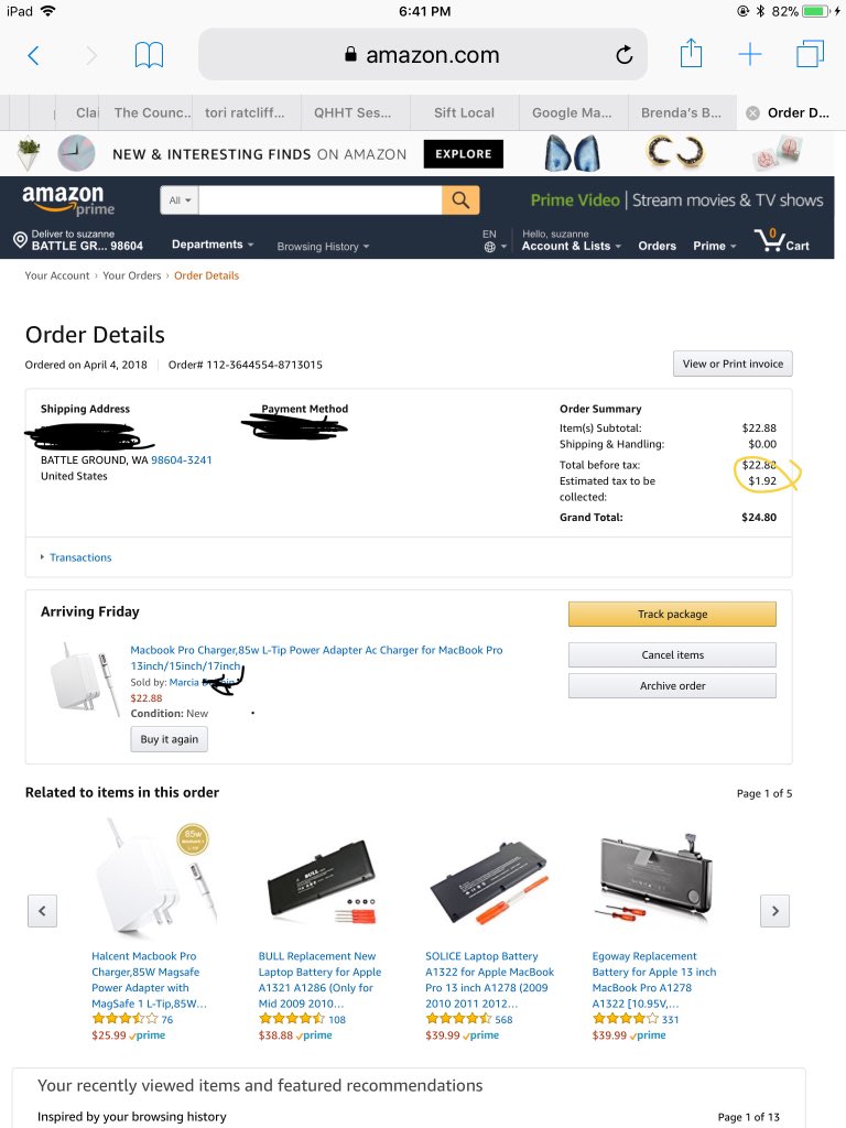 Amazon DOES collect sales tax on my 3rd party sales. WA state requires me to pay both state and local taxes at the same time. Stop repeating the fiction that Amazon doesn’t collect state sales tax for 3rd party sellers. My own recent 3rd party purchase:pic.twitter.com/jHMMBJTjk0