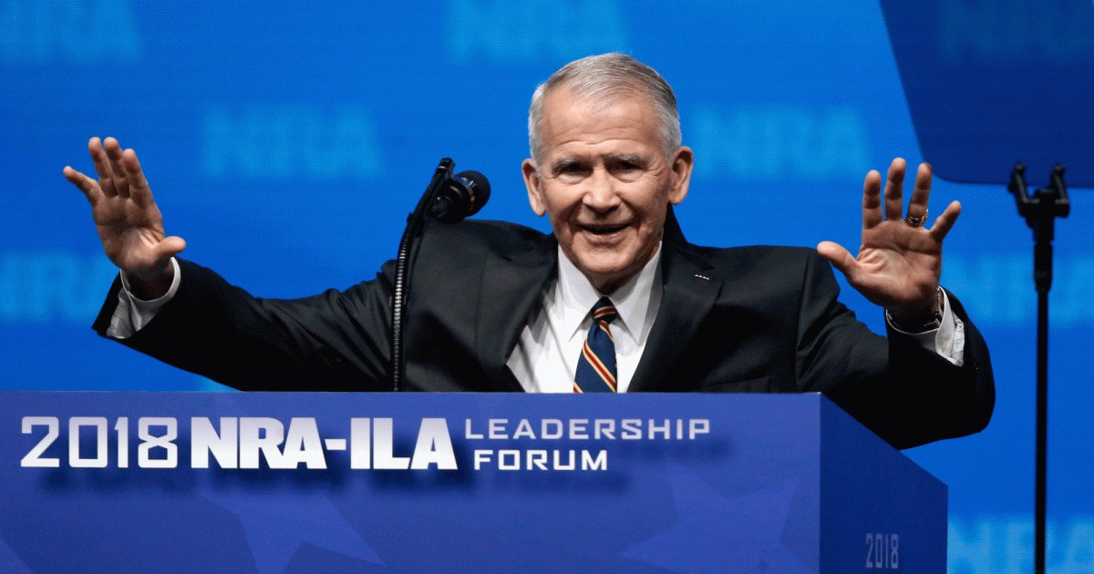 Well, yeah. Ollie is a shameless inveterate liar Making him a perfect fit for NRA leader Truth is the NRA have blood on their hands They are an evil gun lobby group who pretend their greed is patriotism They are not the victims here Those victims are in boxes Or living with scars