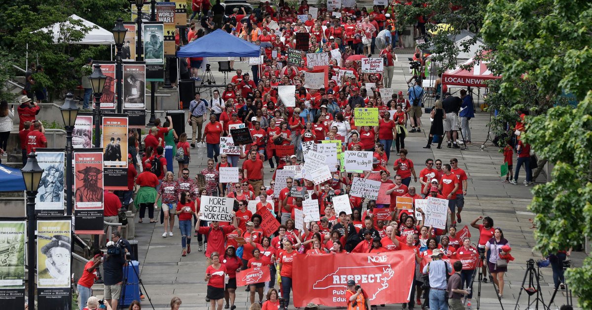 North Carolina's teachers are taking to the streets in huge numbers. Here's why. http://bit.ly/2rJmVUa pic.twitter.com/dXOMfaenoH