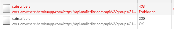Some CORS issue when trying to subscribe... Failed to load resource: the server responded with a status of 403 (Forbidden) SignUp.js:78 Error fetching data: SyntaxError: Unexpected token S in JSON at position 0