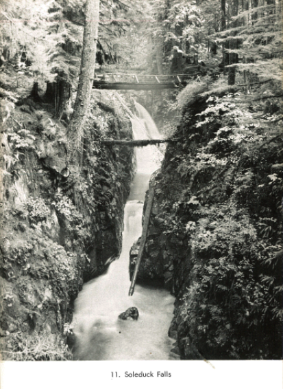 #ThrowbackThursday, we bring you a retro photo of Sol Duc Falls (which used to be named "Soleduck Falls"!) from "Roads and Trails of Olympic National Park", published in 1957.pic.twitter.com/h8ocoizAQb