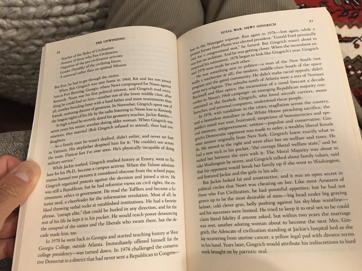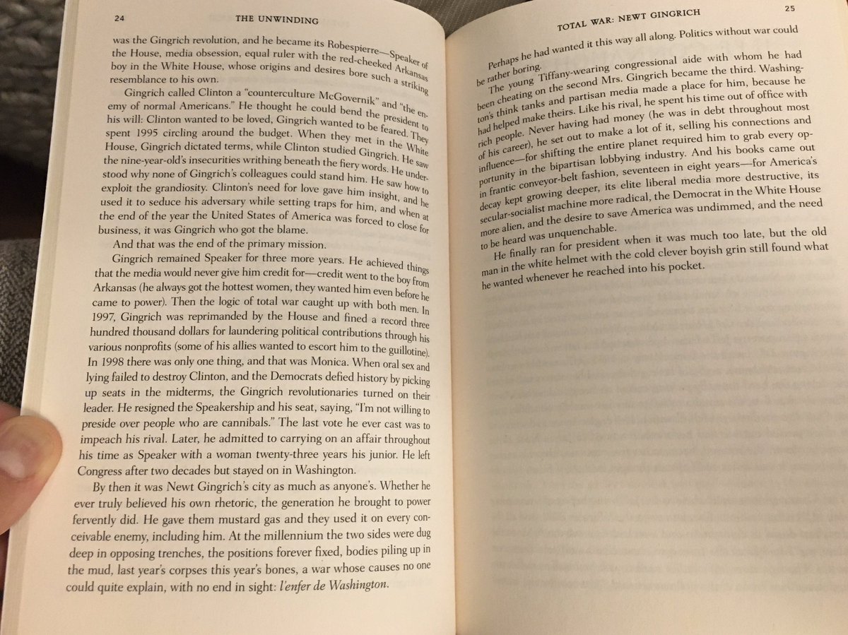 We have Newt Gingrich to thank for a lot of that. There's a great, short chapter in The Unwinding about that. I don't know if you've read it. If not, I'll take some shots of those pages and send them in a few minutes.1 reply 0 retweets 1 like -
