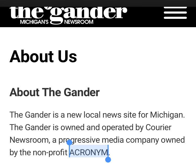 Michigan people: anyone else seeing ads recently for a news site called The Gander? Check out who owns them: pic.twitter.com/sfWyK9gKTh
