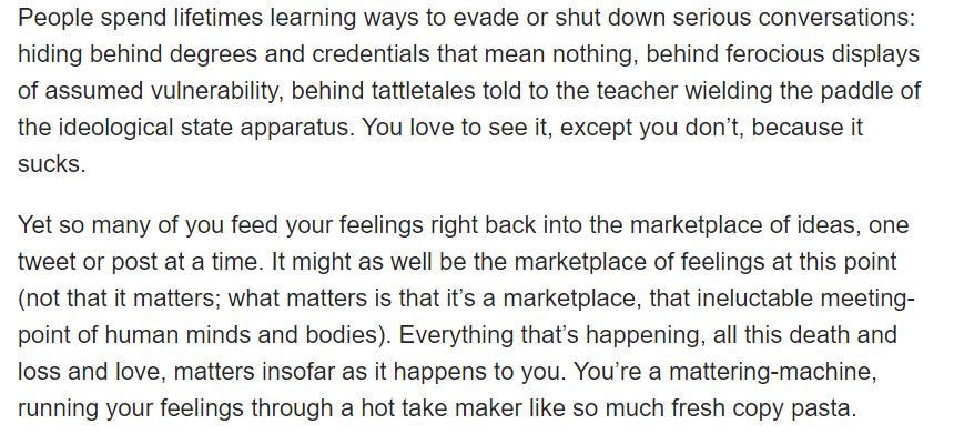 check out my latest piece for @MUGGER1955, this one on the topic of "feelings" in our public discourse (something I covered on an episode we just recorded of @whatisleftpod that should also be out this week)https://www.splicetoday.com/writing/nothing-more-than-feelings …