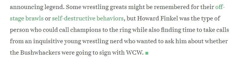 In this piece for @ringer, I took a deep dive into the life and times of WWE announcer Howard Finkel -- the company's first full-time employee -- who passed away at age 69.https://www.theringer.com/2020/4/17/21224864/howard-finkel-obituary-wwe-announcer …