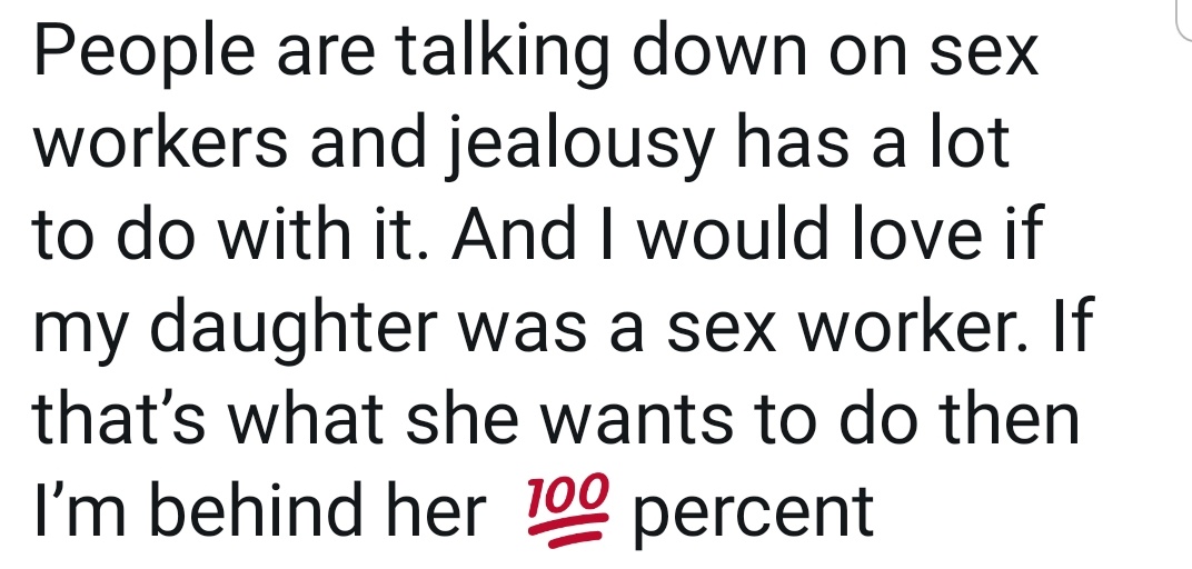 Behind her 100 percent? Not even a little missionary?