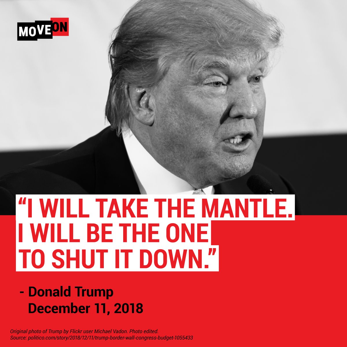 Who caused the government shutdown over a racist & wasteful border wall that Americans don't want? This guy. It's all this guy.pic.twitter.com/BdGIE9sxoL