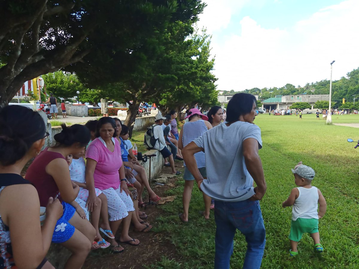 Residents of Brgy. Sta. Maria in Itbayat, Batanes have gathered at the local plaza after evacuating from respective their homes following the series of tremors that rocked the town earlier this morning. Photo by Analyn Dita Nicopic.twitter.com/Ns98J7v80A