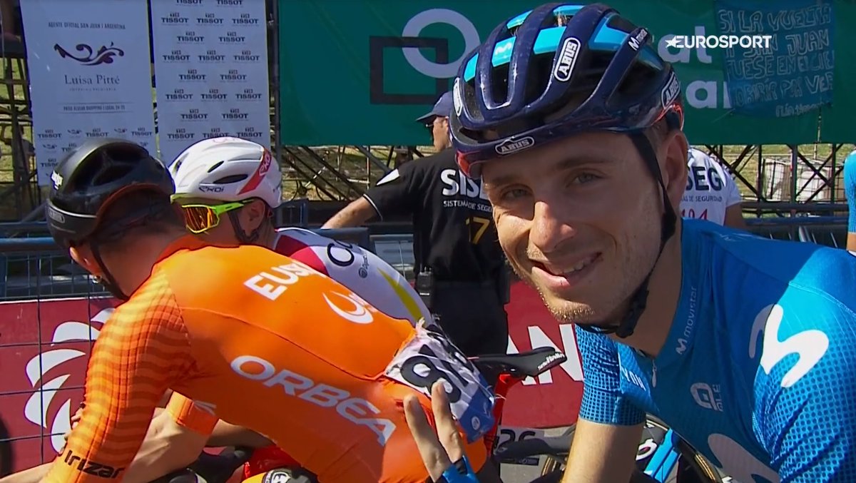 #VueltaSJ2020: Evenepoel (DQT) se adjudica la general final de la@vueltasanjuanok. Tras la toma de tiempos en la penúltima vuelta y a falta de resultados oficiales, Movistar Team acaba con tres ciclistas en el top-20:@Nelsoliveira89 (sexto),@EduSepulvedaARG e@ini_elosegui.pic.twitter.com/oLdesZwGaq