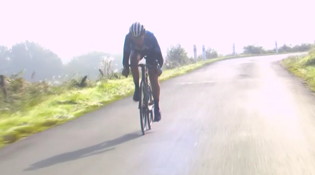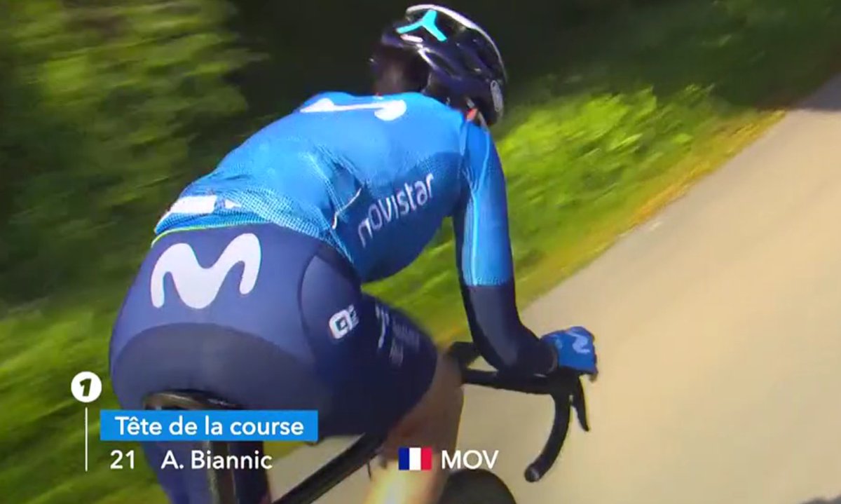 Duro ataque en solitario de la ciclista bretona de Movistar Team en la última vuelta. 15" de ventaja por ahora. ¡VAMOS!