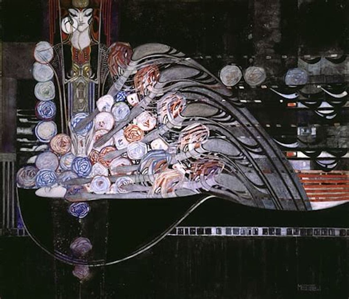 Pt.2. It is not only the work of Charles Rennie Mackintosh that was destroyed in the Glasgow School of art fire, but original artworks & designs by Margaret Macdonald Mackintosh (1864-1933). She was one of the internationally renowned pioneers of the "Glasgow Style" in the 1890spic.twitter.com/ldxqkTKNTS