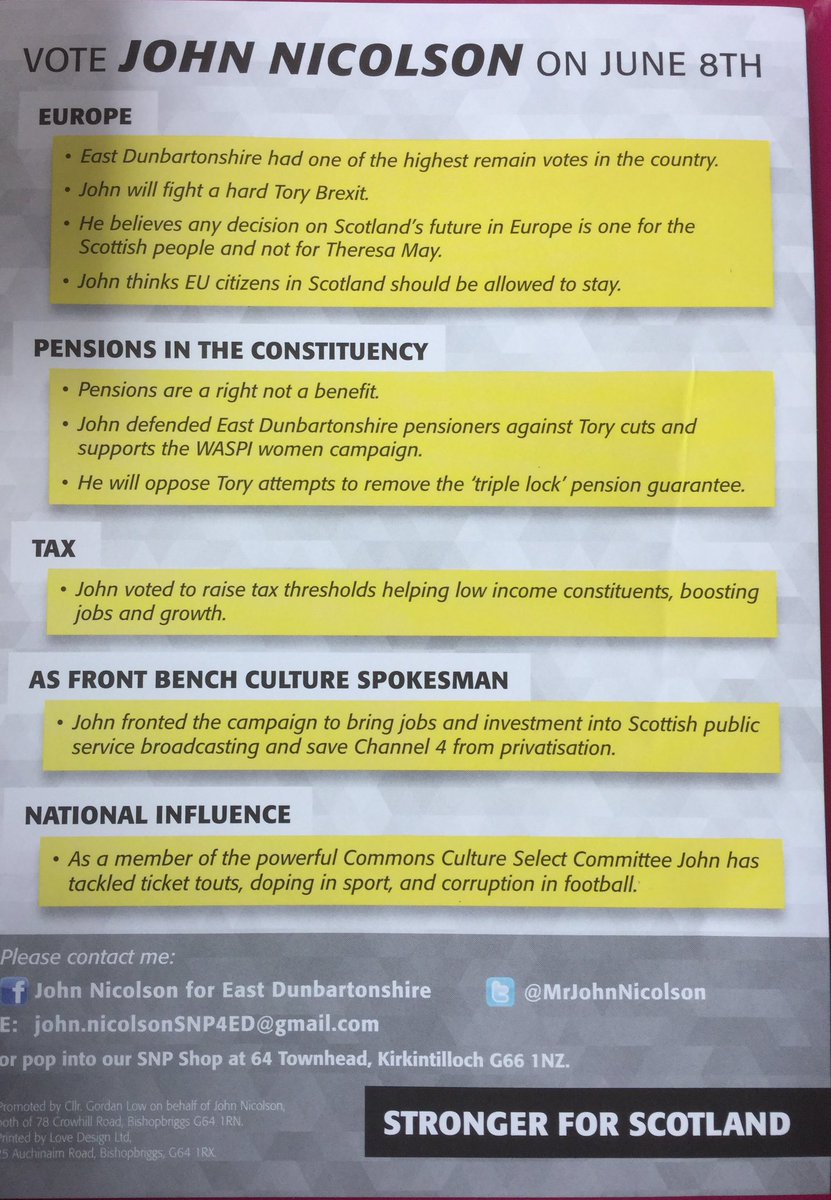 Kirky coffee break with @RonaMackayMSP mid leaflet run. This is going through the doors today. #voteSNP #ge17pic.twitter.com/qKFDY1uORw