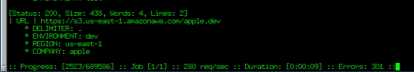 #bugbountytips Protip: Use ffuf/wfuzz to look for public S3 buckets rather than s3recon or bucket finder. I went from 5-10 tests per second to almost 300. Just check for status code 200.pic.twitter.com/H0epBngqiz