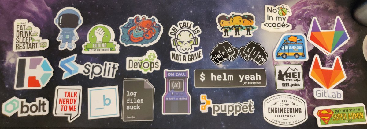 #DevOpsDays, plus a couple new additions arrived from the awesome folks at@stickermule! Sticker board update. Cc@adilio@steviecoasterpic.twitter.com/GbmwgvnRr4