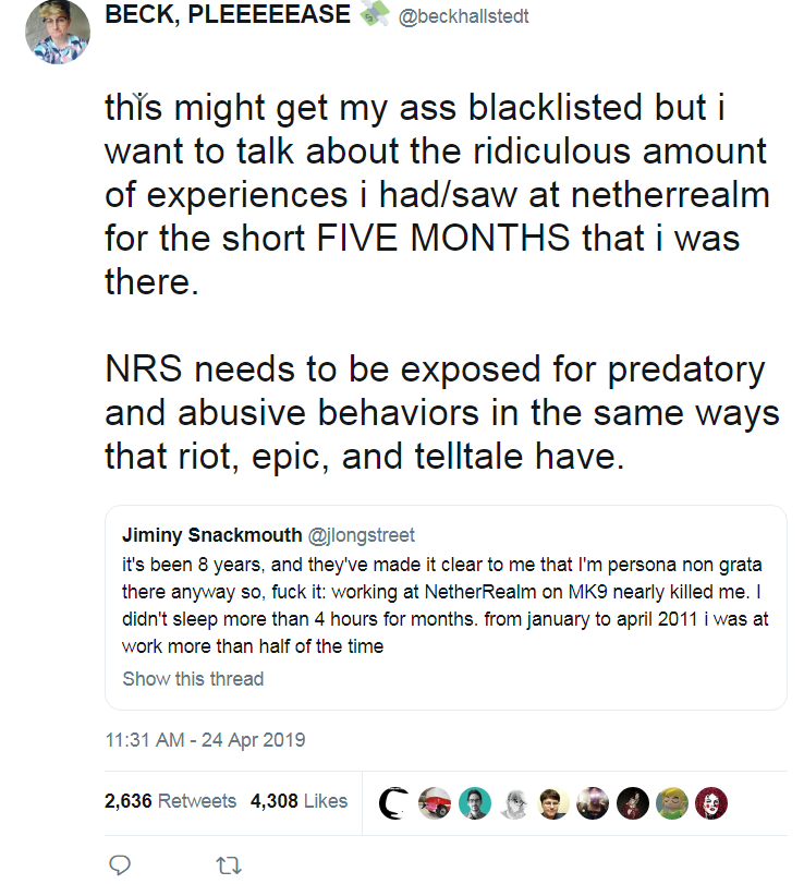 We're customers. Why would we place as much priority over campaigning against "crunch" as we do against the things that directly affect us, like micro-transactions. Sure, crunch sucks, but that's something "under the hood" we aren't even aware of many times.https://twitter.com/Spikey_Buddy/status/1122349249059016704 …