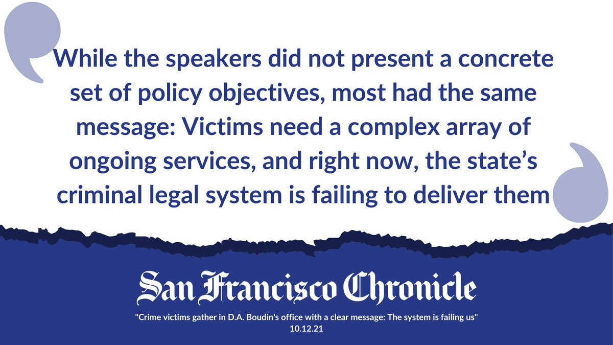 Reimagining our criminal legal system means listening to the voices of crime victims and survivors who are failed by a system fixated on punishment and that ignores the importance of victims services and healing. #JusticeReformpic.twitter.com/sVEaXQhlE1