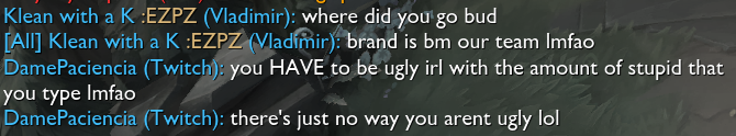 Everyone's gangster till you call them ugly there was nothing but fucking silence in this chat till the game ended after this shitpic.twitter.com/R5GD6idBKg
