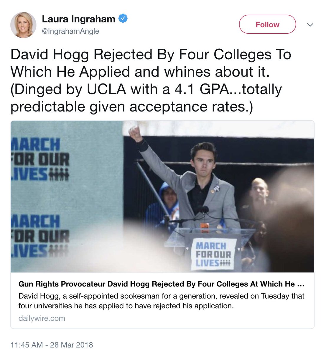 So it looks like Laura Ingraham has said something horrible overnight because I’ve woken up to a bunch of abusive mentions not intended for me once again
