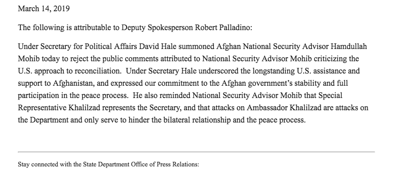 Here’s the thing: Mohib was not “summoned.” He already had an appointment with Hale as far as I know. So this statement added unnecessary fuel to the fire.