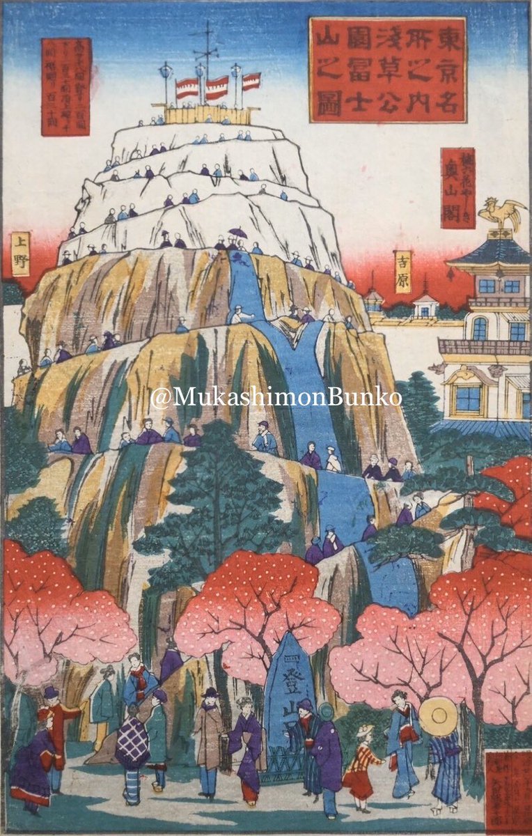 今から130年前の明治23年(1890)2月、東京浅草公園六区四号地にあった富士山縦覧場が解体撤去されました。前年8月の暴風雨で大破。修復し営業を再開したもののその後は不入りで廃業となったようです。開業から僅か2年半あまりのことでした。pic.twitter.com/ub76bxLfHq