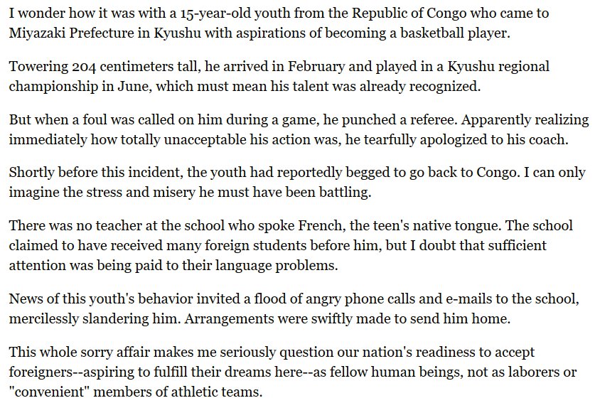 Asahi Vox Populi column is sympathetic to the Congolese schoolboy basketball player who punched a referee. http://www.asahi.com/ajw/articles/AJ201806260023.html …pic.twitter.com/kFk2N6Y829