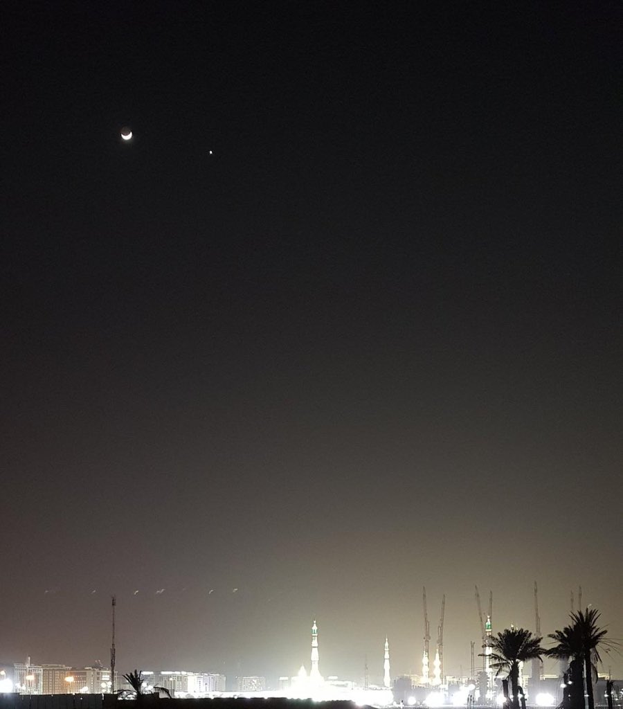 الزهرة يُصاحب هلال شهر جمادى الآخر في سماء الحرمين الشريفين. | عبر:
