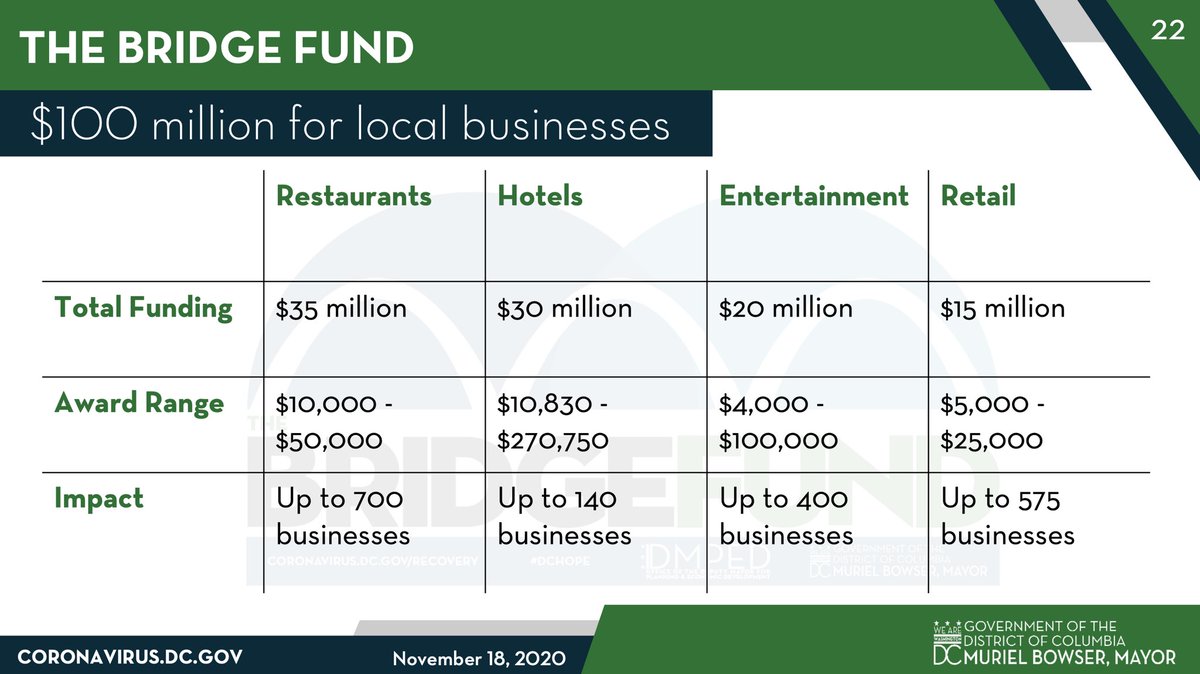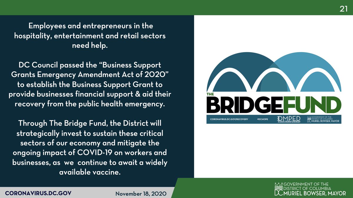 the Bridge fund, a $100M investment to help our employees and entrepreneurs in the hospitality, entertainment, and retail sectors!