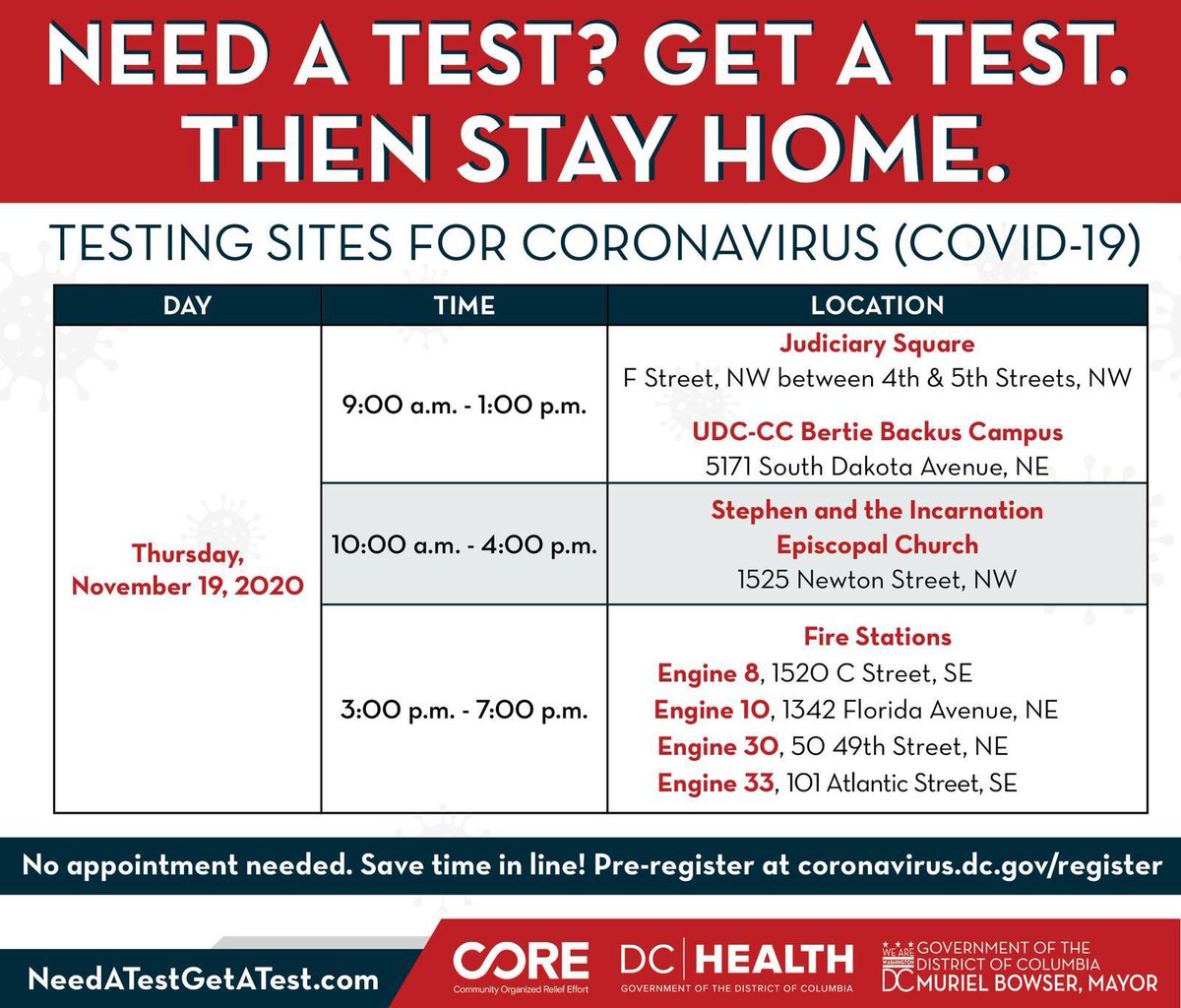 Key takeaway: #Coronavirus testing has its limitations. A negative test today could be a positive test tomorrow. Testing does not replace the need to wear masks, social distance, & practice good hygiene More#COVID19 info: http://coronavirus.dc.gov pic.twitter.com/pZ7TkSmdlS