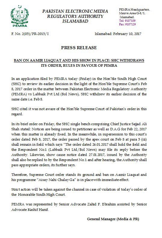 Sindh High Court bans hate monger Amir Liaquat's program on BOL, agrees he uses name of Islam to target others 4 selfish reasonspic.twitter.com/fP6r7Rd6j2