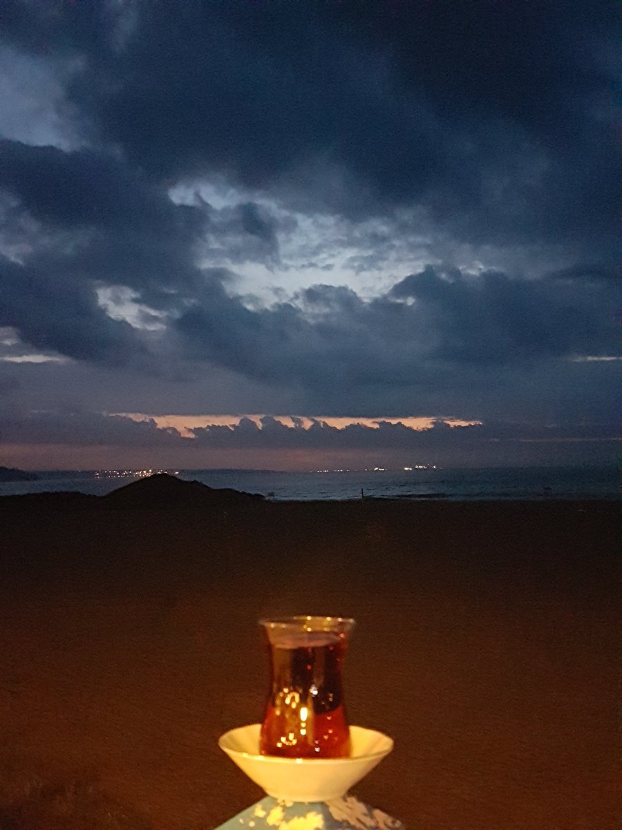 Muhteşem bir manzara ve bu manzaranın tamamlayıcısı incel belli çay bardağı