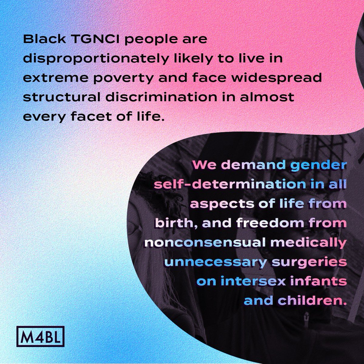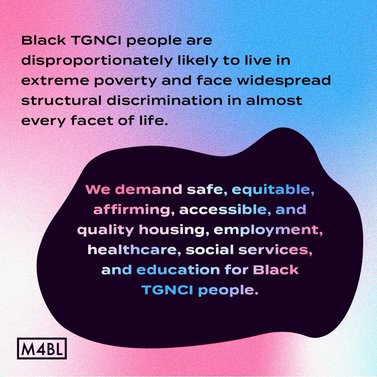 #PrideMonth and always, we demand an end to the war on Black TGNCI people. Harassment against Black LGBTQ+ people pervades virtually every institution & setting, including schools, workplaces, systems of policing and more. Learn more at http://m4bl.link/tgnci#pridepic.twitter.com/8TW19h6SMl