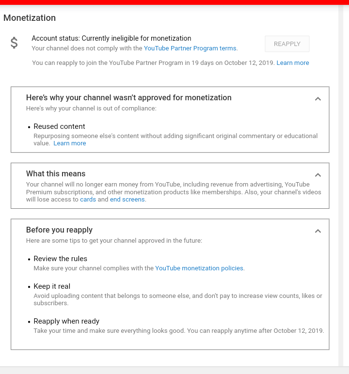 @TeamYouTube . HAI Team my channel determine from ypp the Reason Channel not in the and Reused content something like that sir my channel is everything news movie updates,short films,didn't use someone content https://www.youtube.com/channel/UCqh5GWkBG8ecV0NNUct0YIw …pic.twitter.com/Vek5NFyjbF