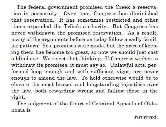 just perfect. this line & the entire paragraph got to me, too "Unlawful acts, performed long enough and with sufficient vigor, are never enough to amend the law." Loved that he started the opinion with the trail of tears. Today is a good day.pic.twitter.com/jLu34f1gGh