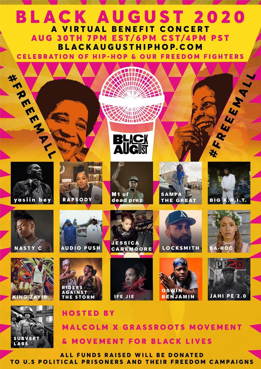 #BlackAugustHipHop2020 Benefit Concert on@SwaysUniverse#FreeAllPoliticalPrisioners#BlackAugustpic.twitter.com/FQyeNmRB0C