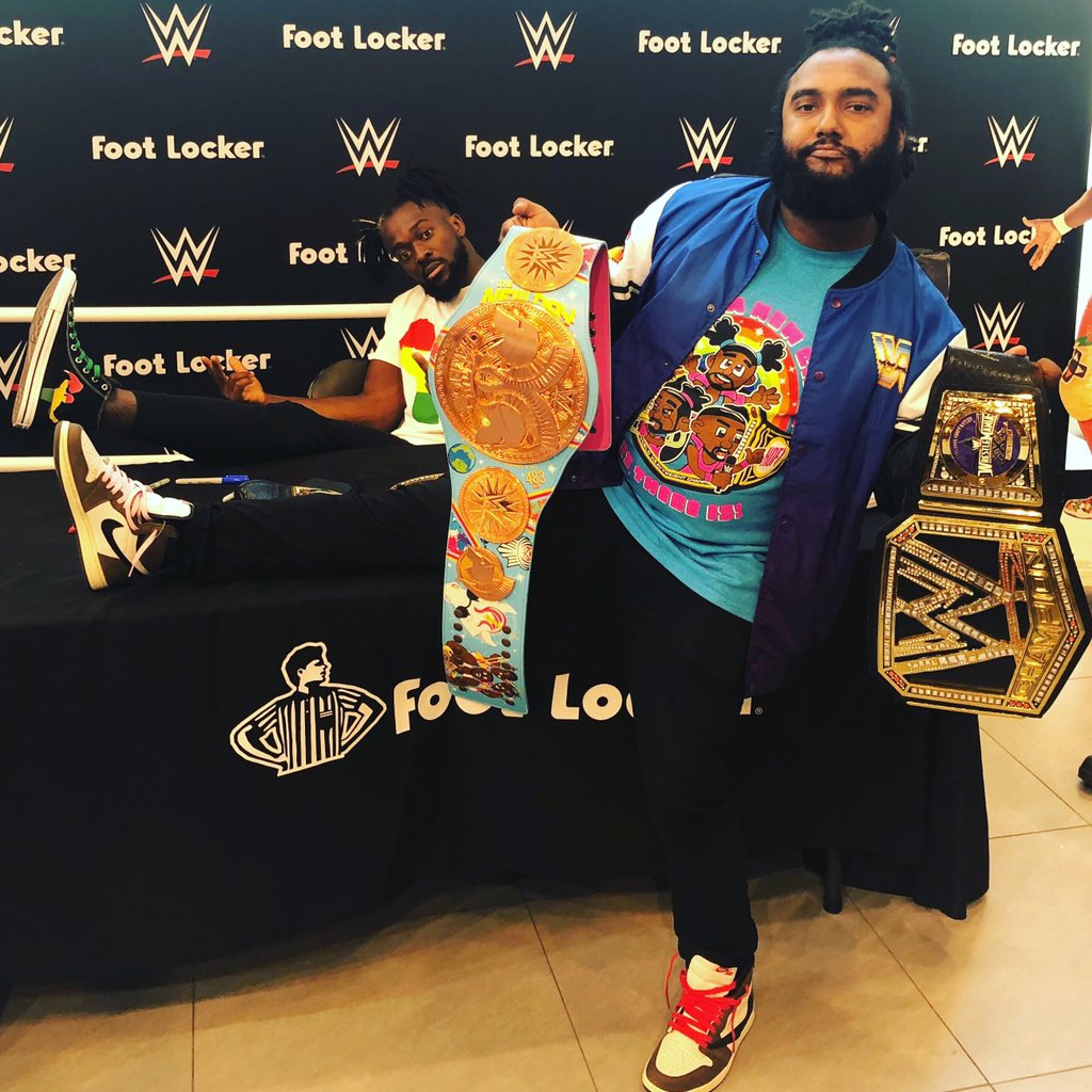 #Sneakerheads link up, you gotta show off the kicks!@truekofi knew what was up with the Travis Scott 1s. Gotta get@xavierwoodsphd and@wwebige in there next time. It’s a#NewDay yes it is!!!!#TheNewDay#WWEShopShots#KofiMania#WWE#SummerSlam#WDYWT@chalklinecopic.twitter.com/TrYHPVtGSK