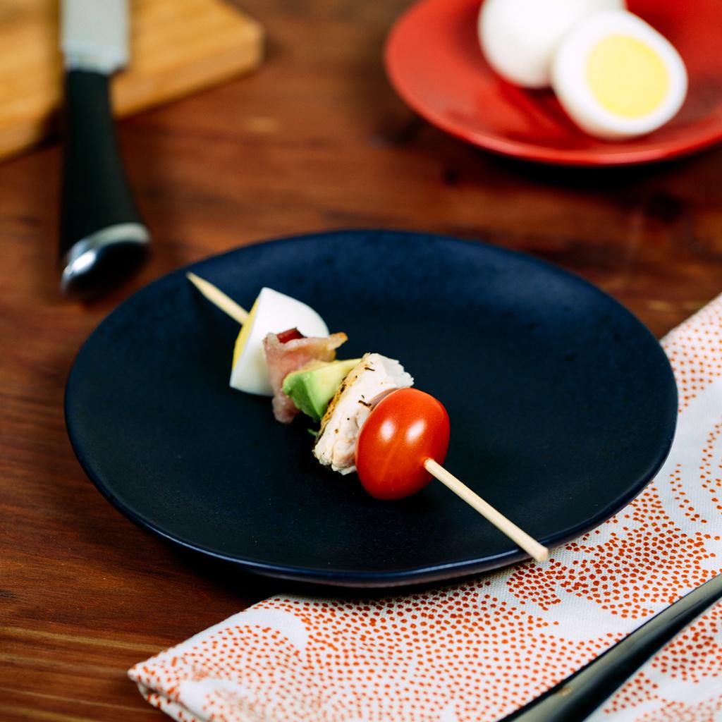 #EasyFancy with this one-bite Cobb Salad using a hard boiled egg, avocado, chicken, bacon & tomato! pic.twitter.com/yVGUMCXKM1