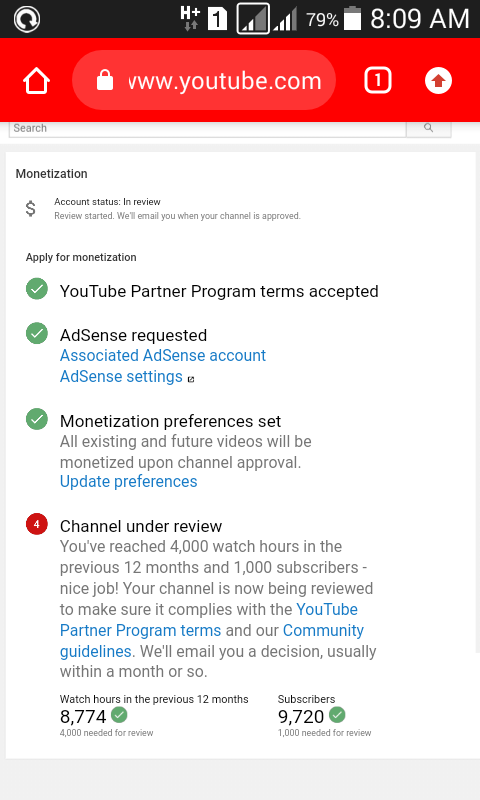 @TeamYouTube hello sir please see my Channel I'm complete 1k subscriber and 4k watch Hour's please enable my monetization