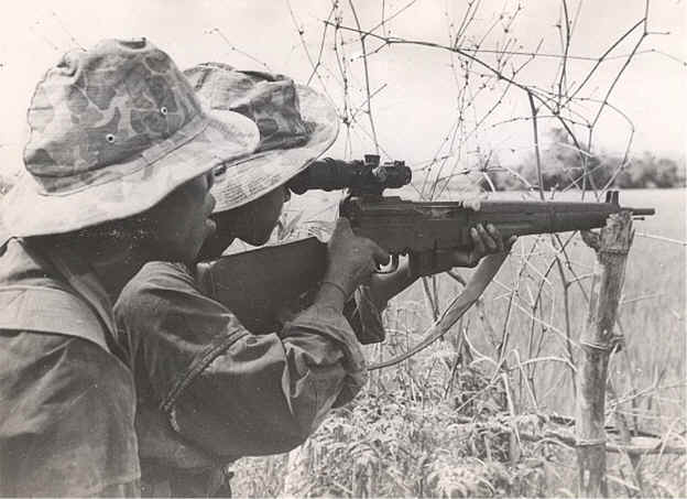 French sniper-spotter team prepare to fire a scoped MAS-44 semi-auto rifle during the First Indochina War. Although the French had developed "modern" semi-auto battle rifles before WW2, the German invasion halted their widespread adoption until after that conflict had ended.pic.twitter.com/sEX8exy2Ty