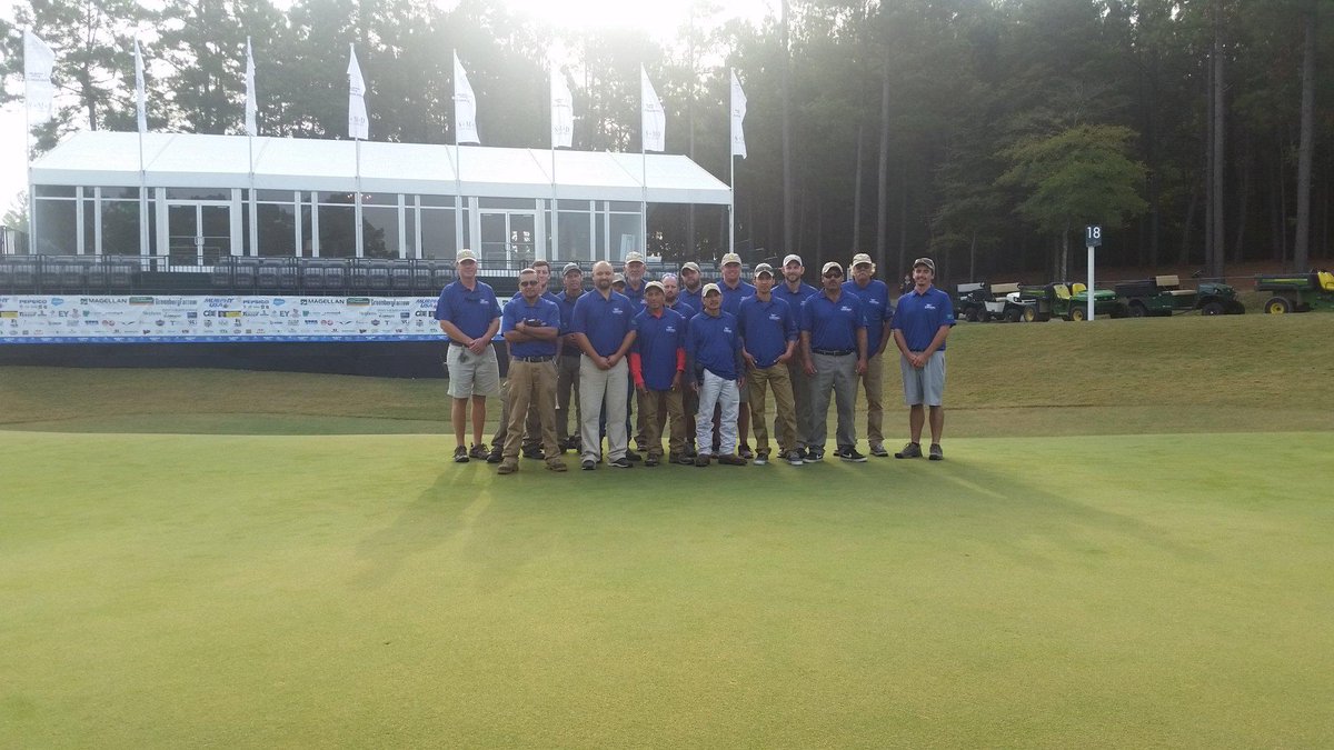 Mystic Creek Golf Course Maintenance Staff and Volenteers on 18 green!