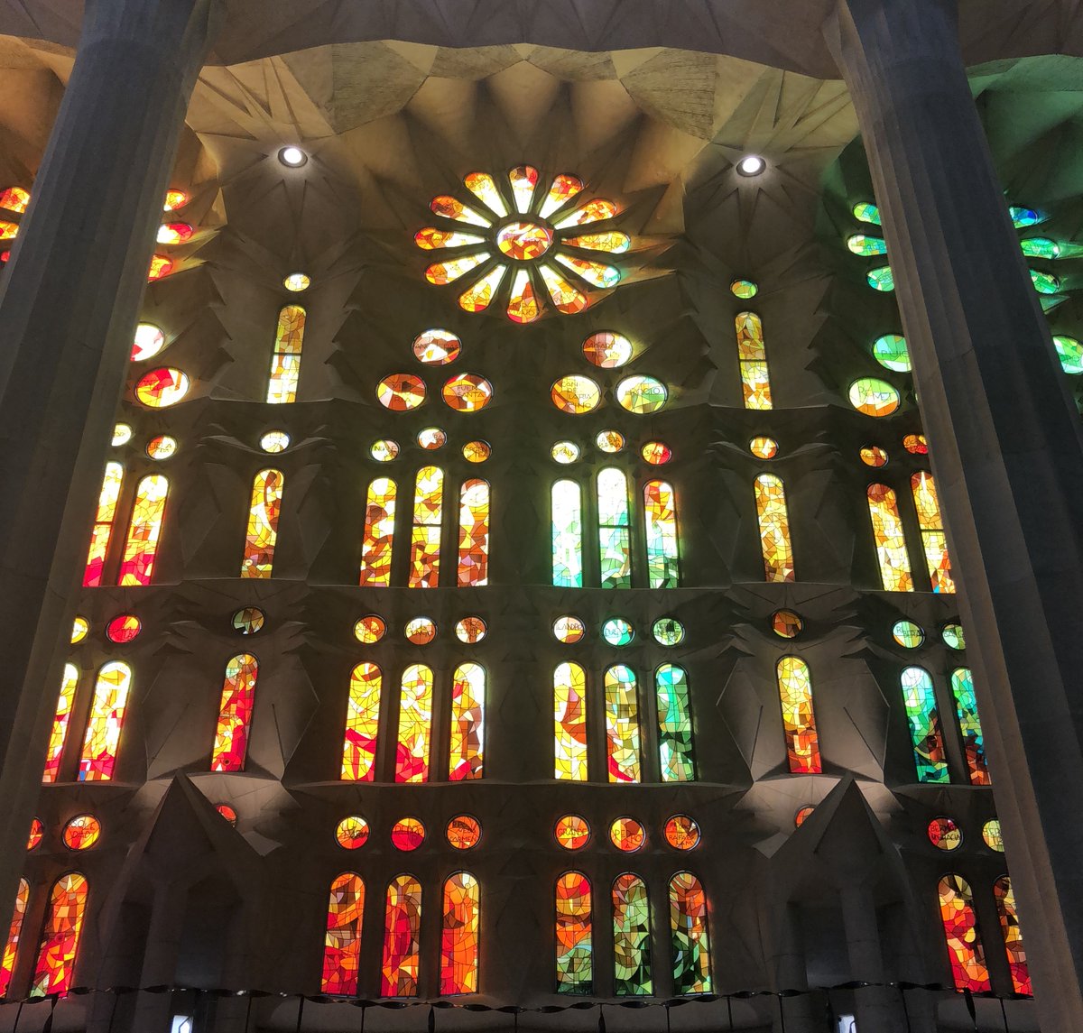 #サグラダファミリア 光がステンドグラスから入って 教会内を幻想的な世界に#バルセロナ#世界遺産#スペインpic.twitter.com/jJJCPaUPw3